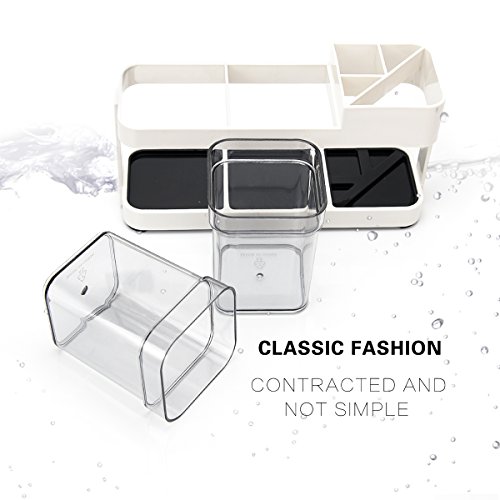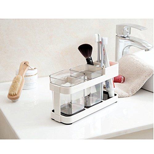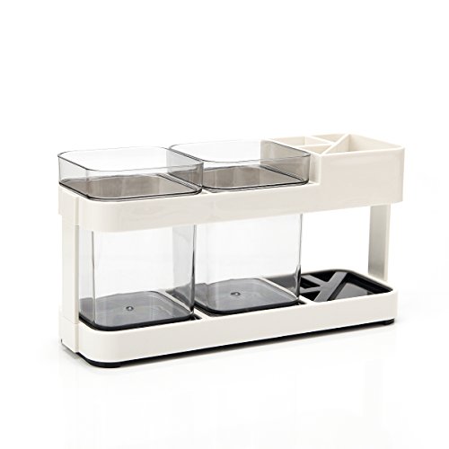 Borsong Toothbrush Toothpaste Stand Holder with 2 Cups Bathroom Storage Organizer (2 Cups)