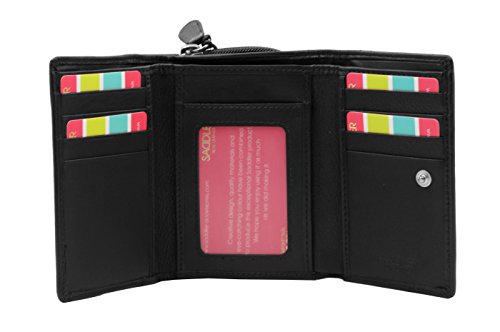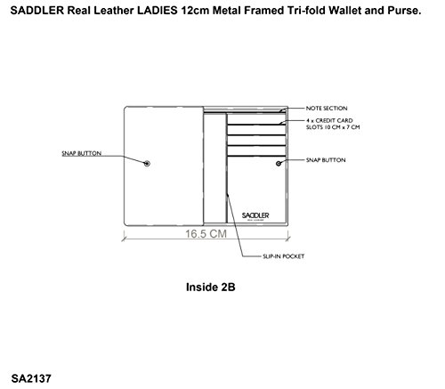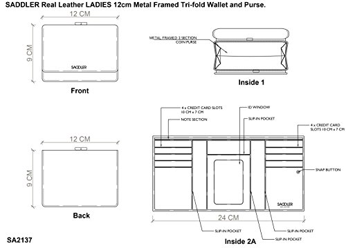 -. Binding : Apparel -. Brand : Saddler -. Department : womens -. Feature : SADDLER Essence Collection - a Quintessentially Real Leather Brand from Great Britain. Contemporary Styling Together with an Uncompromising Selection of Natural Leather and Quality Workmanship make SADDLER an Ideal Gift / Tri-fold Construction Wallet - Front Flap Secured With Snap Button that Opens to A Full Length Deep Bill Section, 8 Credit Card Slots,Clear PVC Window and 3 Vertical Slip-in Pockets / Back Side has a Roomy Zipper 2 Section Coin Purse / Outer Flap embossed with Discreet SADDLER Logo, SADDLER Monogrammed Woven Jacquard Lining used Throughout the Interior / Approximate Size: 5" x 4" x 1 1/2" When Closed and Without Packaging; Approx 5 Ounces when Empty -. Model : SADDL-2137 -. PackageQuantity : 1 -. ProductGroup : Apparel -. ProductTypeName : ACCESSORY -. Size : One Size -. Title : SADDLER Womens Real Leather Medium Trifold Wallet with Zipper Coin Purse
