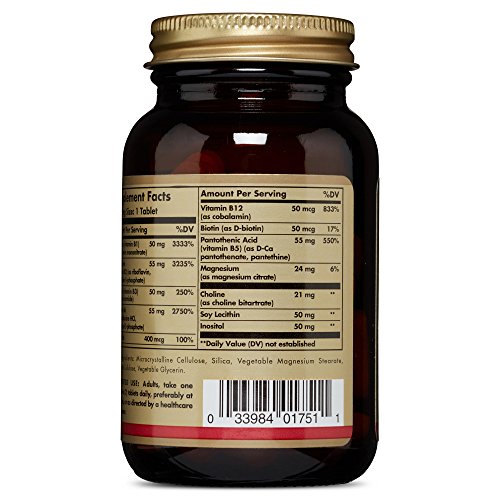VITAMIN BREAKDOWN - Solgar Vitamin B-Complex provides the body with a source of vitamins B1, B2, B3, B5, B12, Biotin and Folic Acid.