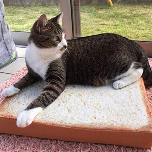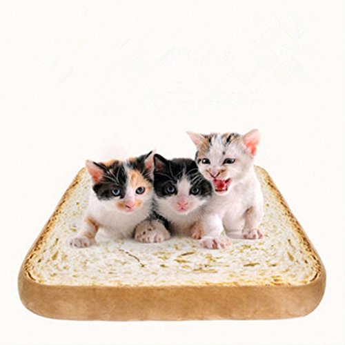 Description: - High simulation toast cushion plush cushion, innovative design. - Removable, machine washable cover. - Made of high quality fabric filled with high density sponge, offers maximum comfort and warmth for your lovely pets.The bed will allow them to relax and rest more easily and will make finding a comfortable position easier to maintain. - Give your pet the option of a warm pet bed when they need it or when they just feel like an extra snuggle! It is a surprise gift for you lovely pet. - Size: Approx. 40cm x 40cm x 7cm/15.75 x 15.75 x 2.76inch