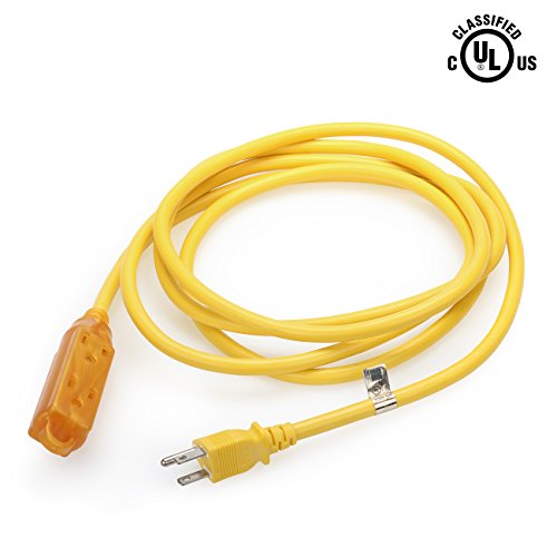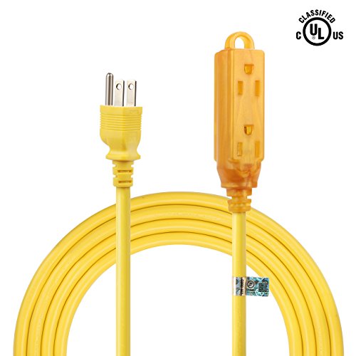 Supmart 10 Feet Power Extension Cord 3 Prong Indoor Outdoor 14/3 SJTW NEMA 5-15 14 AWG Power Extension Cable Cord Yellow - 125 Volts at 15 Amp 1875Watt UL Listed