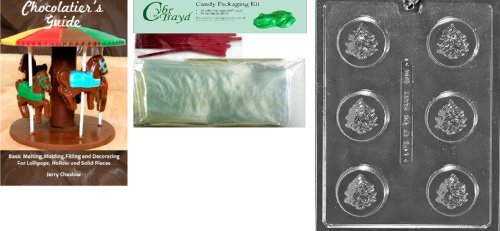 Cybrtrayd Tree Cookie Chocolate Mold with Chocolatier's Bundle of 25 Cello Bags, 25 Red Twist Ties and Chocolatier's Guide