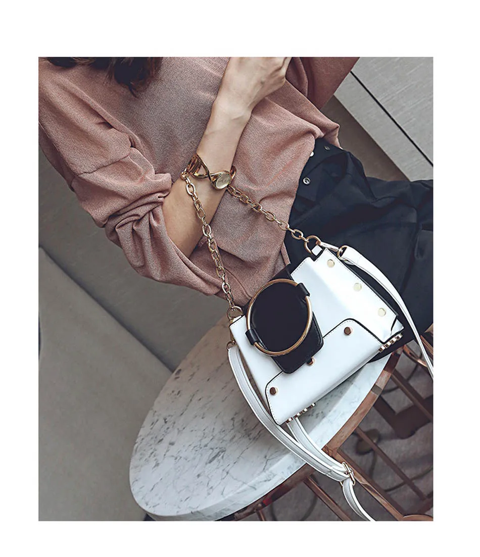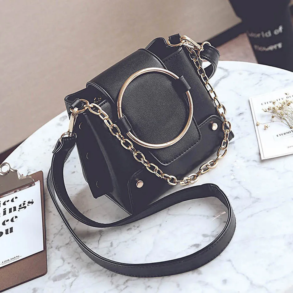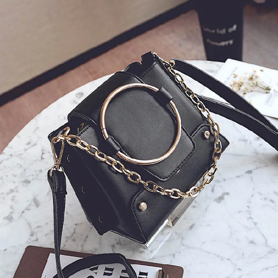 Model Number:2018 Retro Metal Ring Handbag Hand Bag For Girls