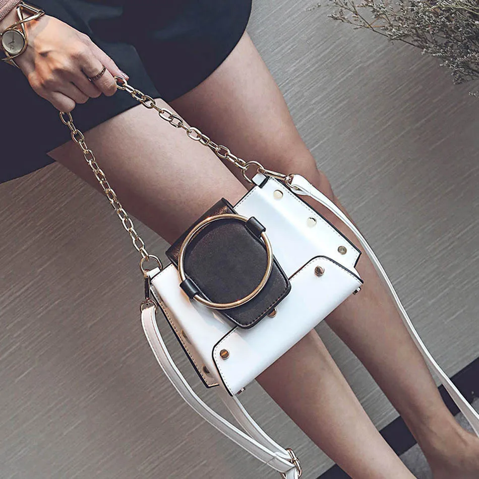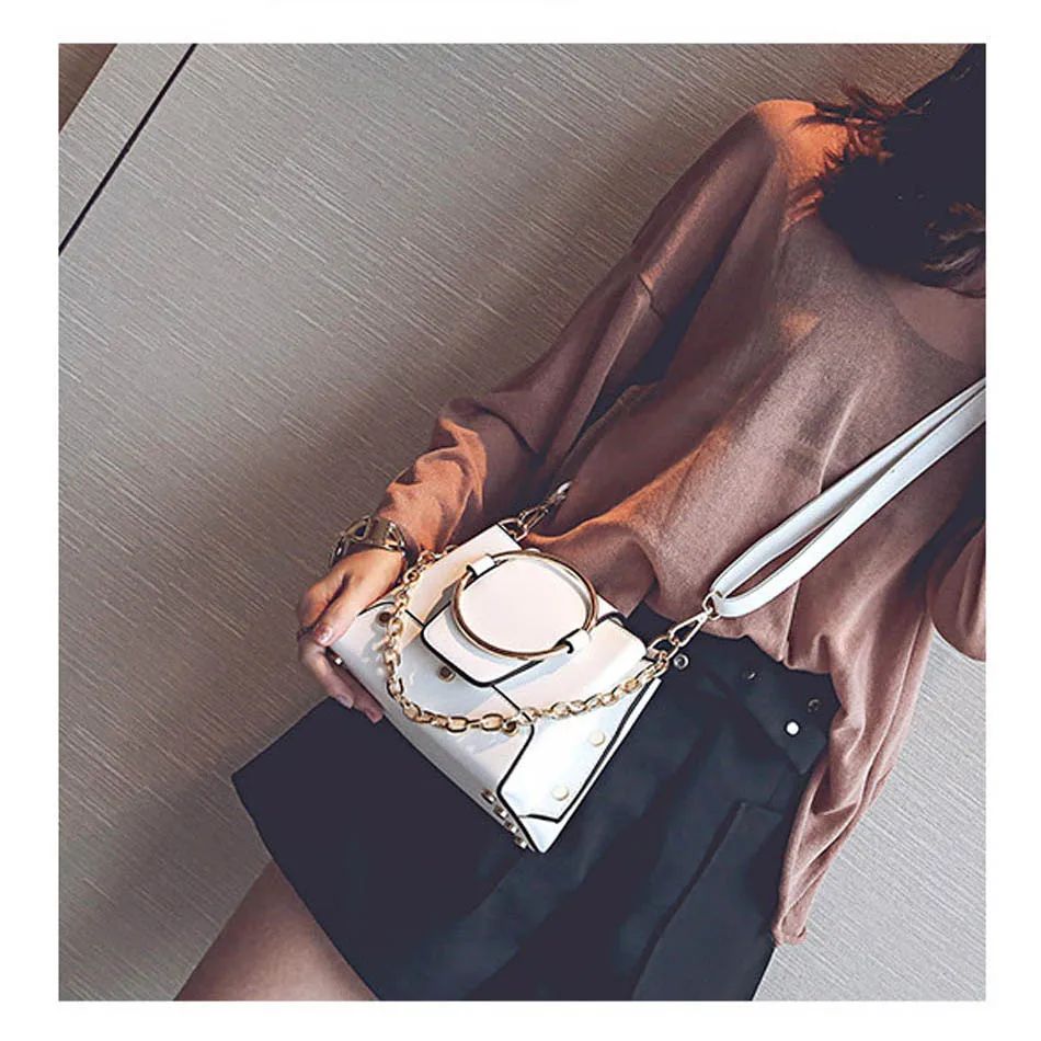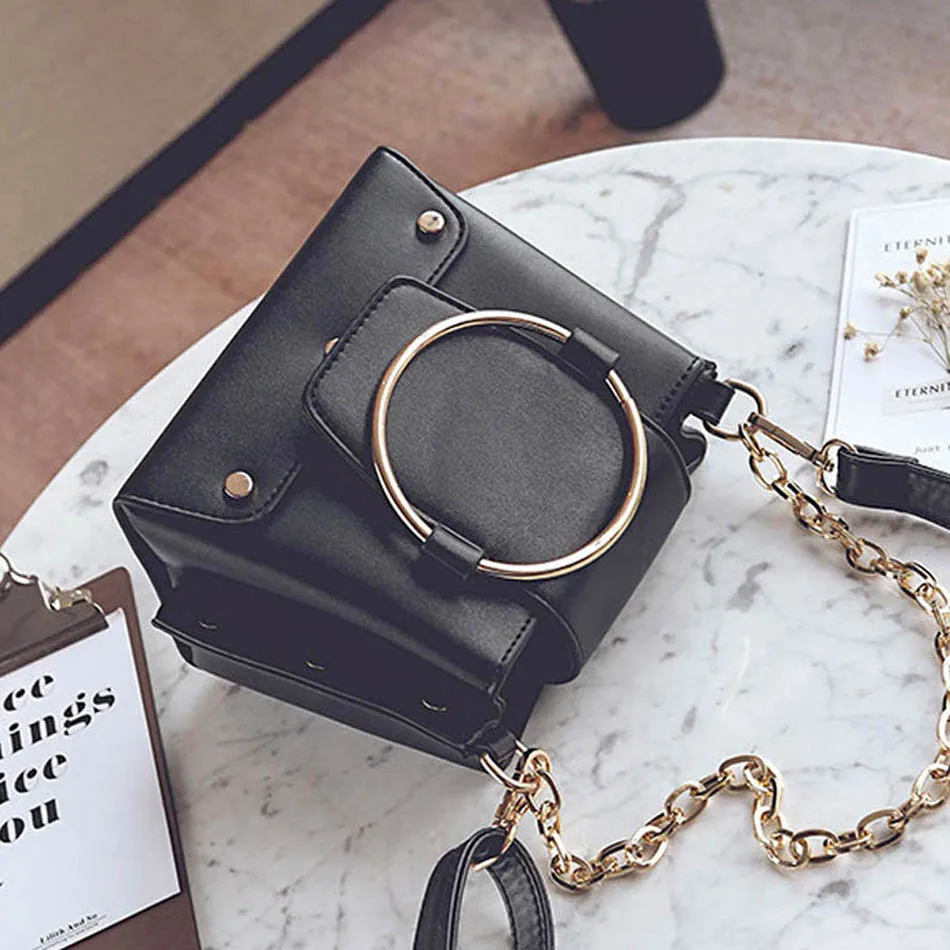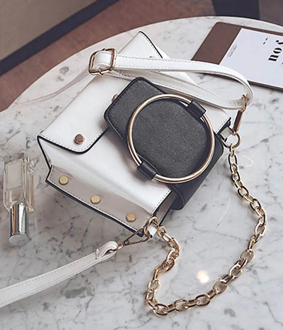 Style:Unique Metal Ring Mini Chain Bag For Women