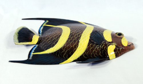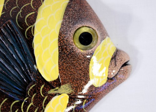 Hand Painted Yellow Strip Black Tropical Fish Replica Wall Mount Decor Plaque 8"