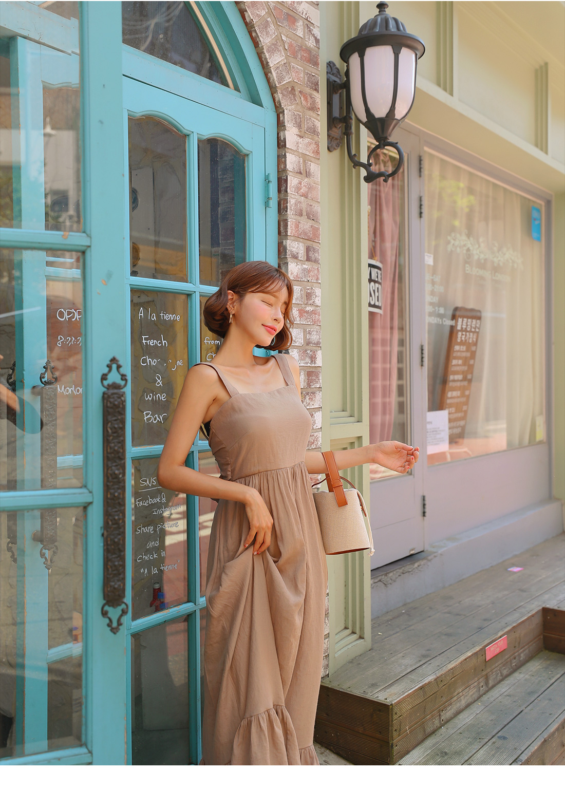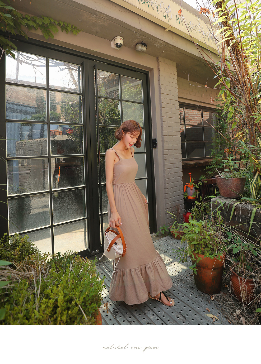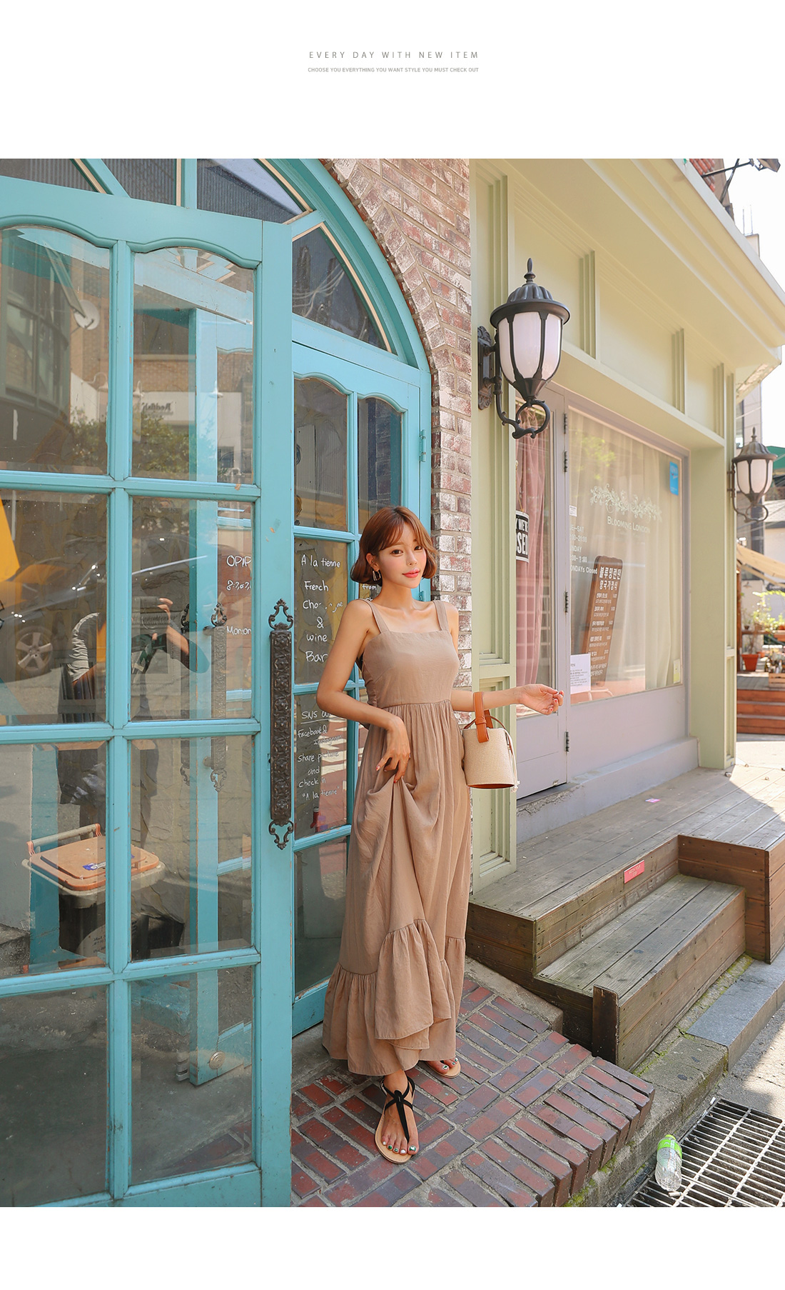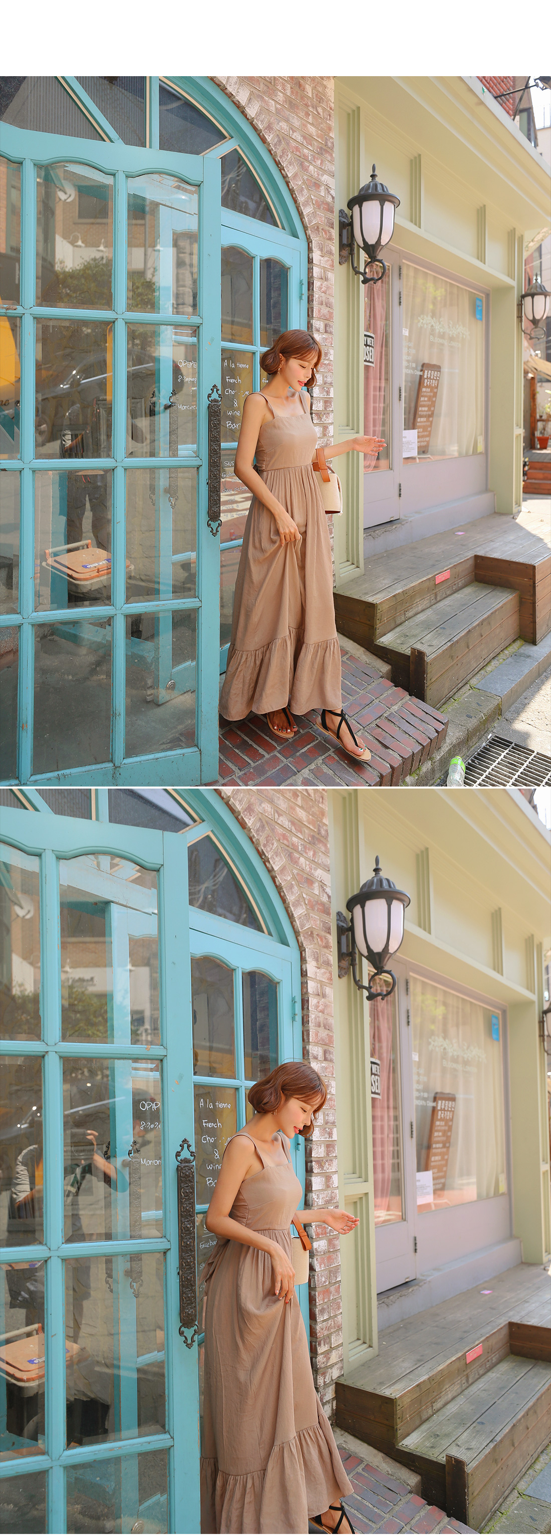 MD COMMENT여성스러운 스타일을 연출해 줄 롱원피스를 소개할게요.살짝 깊은 스퀘어 네크라인으로 디자인되어목선과 쇄골라인을 예쁘게 연출해주는 아이템인데요.양 사이드에 있는 스트랩으로 리본으로 묶어 연출해주시면은-근 섹시한 분위기와 트렌디한 무드를 연출해주구요.허리 반밴딩으로 안정감있게 착용가능하며편안한 착용감을 느낄수 있답니다.전체적으로 여유있는 핏감과 발목을 덮는 롱-한 기장감으로부담없이 즐기기 좋으며군살을 쏙- 숨겨줘 체형커버에 효과적이랍니다!밑단의 프릴 디테일을 주어 여성스러운 포인트를 한-껏 더연출해주었구요.가벼운 소재감으로 걸을 때마다 매력적인 실루엣이 연출되어데이트룩, 바캉스룩 등 포인트 주기 좋은 원피스 아이템으로 추천할게요!백라인의 스트랩으로 손쉽게 탈,착용 가능하답니다.COLOR/SIZE베이지,핑크,블랙FREEMODEL FITTING베이지/FREE