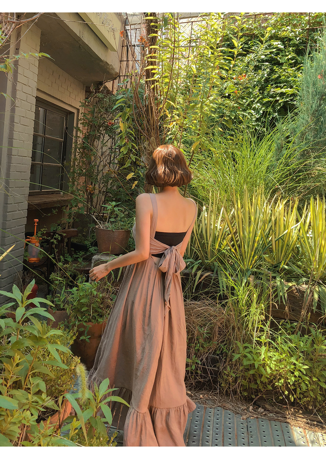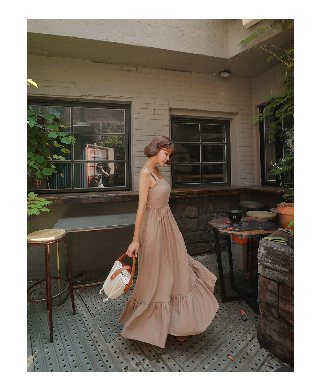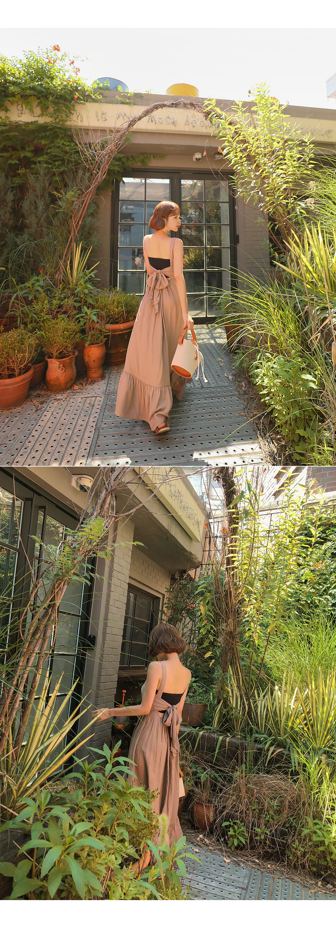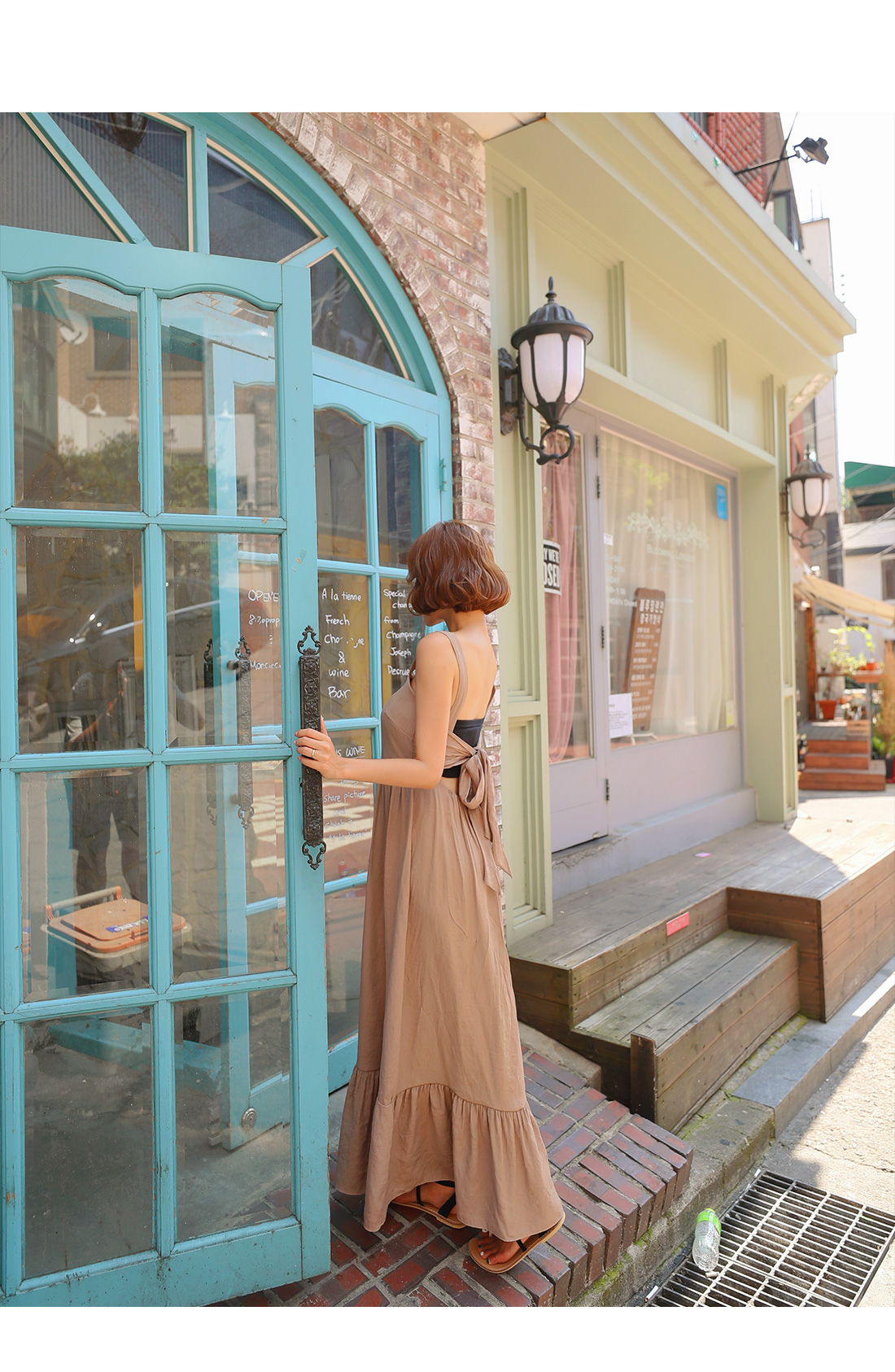 MD COMMENT여성스러운 스타일을 연출해 줄 롱원피스를 소개할게요.살짝 깊은 스퀘어 네크라인으로 디자인되어목선과 쇄골라인을 예쁘게 연출해주는 아이템인데요.양 사이드에 있는 스트랩으로 리본으로 묶어 연출해주시면은-근 섹시한 분위기와 트렌디한 무드를 연출해주구요.허리 반밴딩으로 안정감있게 착용가능하며편안한 착용감을 느낄수 있답니다.전체적으로 여유있는 핏감과 발목을 덮는 롱-한 기장감으로부담없이 즐기기 좋으며군살을 쏙- 숨겨줘 체형커버에 효과적이랍니다!밑단의 프릴 디테일을 주어 여성스러운 포인트를 한-껏 더연출해주었구요.가벼운 소재감으로 걸을 때마다 매력적인 실루엣이 연출되어데이트룩, 바캉스룩 등 포인트 주기 좋은 원피스 아이템으로 추천할게요!백라인의 스트랩으로 손쉽게 탈,착용 가능하답니다.COLOR/SIZE베이지,핑크,블랙FREEMODEL FITTING베이지/FREE