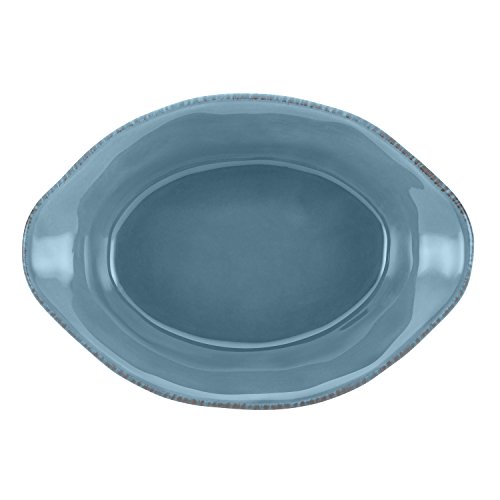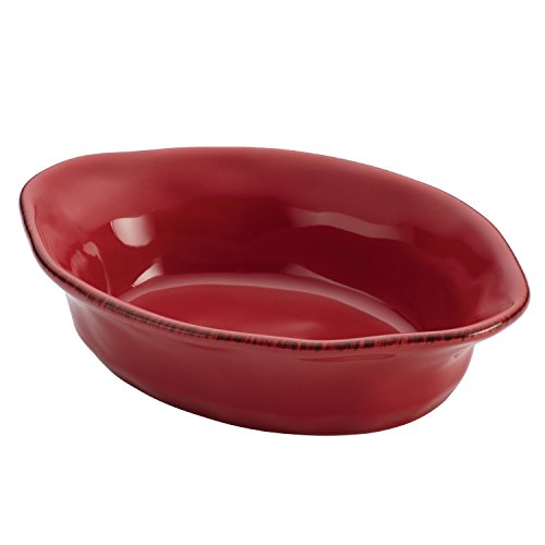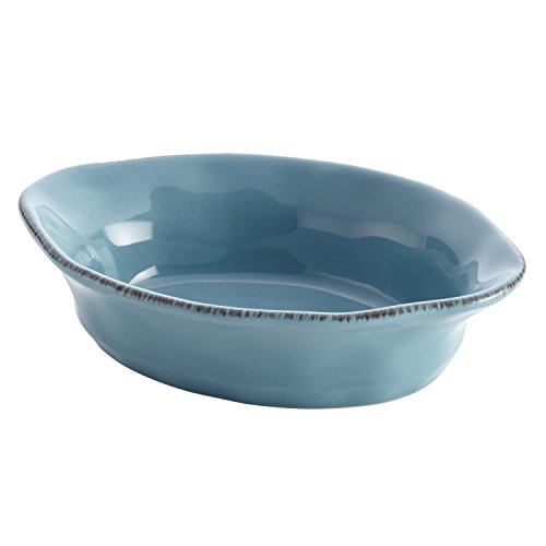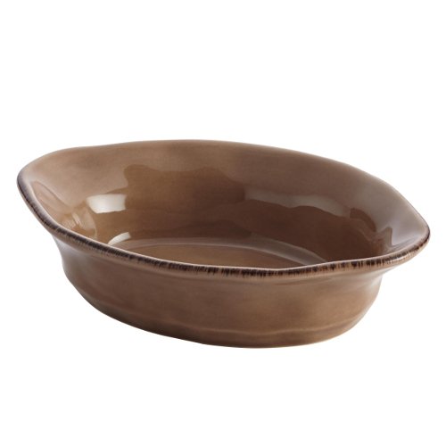 Bake and serve enticing, individual-sized entrees in this warm Rachael Ray Cucina Stoneware 12-Ounce Oval Au Gratin. The relaxed Old World charm of the combination baking and serving dish makes a welcoming statement at the dining table. Crafted from durable, solid stoneware and glazed with earthy color, this small stoneware au gratin combines subtle, handcrafted texture with rustic character and its classic flared contours incorporate comfortable freeform handles. With its oven-to-table versatility, the appealing oval au gratin is perfect for baking and serving personalized portions of Rachael's Paprika Turkey Shepherd's Pie, or for sharing sides of hot artichoke and leek dip at a dinner party. Oven safe to 500, the stoneware baker is microwave, freezer and dishwasher safe for convenience. Eye-catching and versatile, the stoneware baker matches artisan-styled Cucina dinnerware to bring a harmonious look to the kitchen and dining room and partners perfectly with other baking dishes and serve ware in Rachael's Cucina collections. Offer delicious personal-sized meals and scrumptious appetizer dips in the oven-to-table Rachael Ray Cucina Stoneware 12-Ounce Oval Au Gratin.Feature