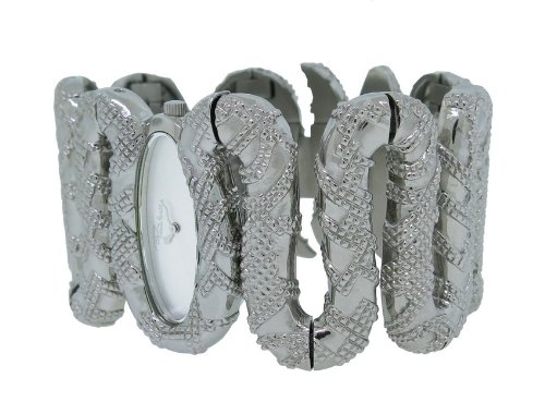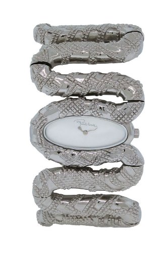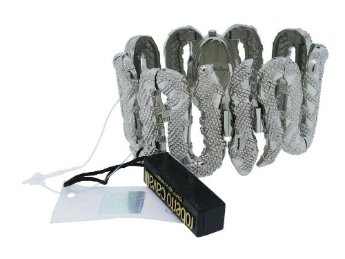 A wild and feminine touch by Roberto Cavalli, this snake-coil bracelet watch envelopes the wrist with uncomparable style. Signature gift box included, Made in Italy