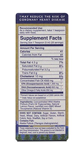 Dietary Supplement Concentrated Triglyceride Form 2150 mg EPA + DHA Omega - 3 Per Serving 90% Triglyceride Form Certified Sustainable Seafood MSC 25 Servings† May reduce the risk of coronary heart disease † Supportive but not conclusive research shows that consumption of EPA and DHA omega-3 fatty acids may reduce the risk of coronary heart disease. One serving of Peak Omega-3 Liquid provides 2150 milligrams of EPA and DHA omega-3 fatty acids. Wild Alaskan Pollock OilOur fresh fish oil is produced in Alaska from wild Pollock caught in US wafers. We then purify and concentrate the oil up to 60% Omega-3 to provide a Peak dose of EPA & DHA Omega-3 triglycerides in every great tasting spoonful. 90% Triglyceride Form - Guaranteed analysis: 90% of all the fatty acids in this product are in the triglyceride form. Our StoryExperts in manufacturing dietary supplement ingredients for over 20 years, the Wiley Family purifies fish oil at our state of the art, family owned and operated facility located in the heart of the Midwest.Feature