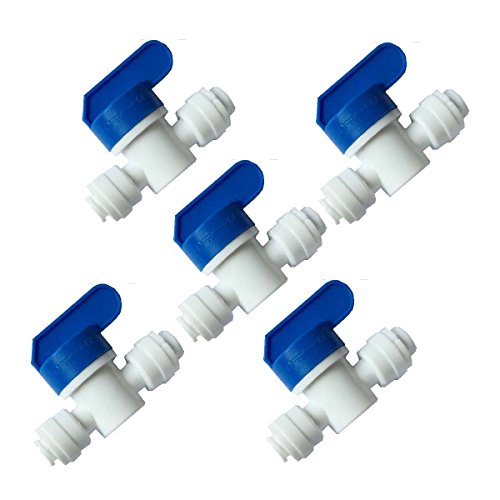 Malida Equal Straight OD Tube Ball Valve Quick Connect Fitting 1/4-Inch by 1/4-Inch OD Valve Start RO Water System Set Of 5