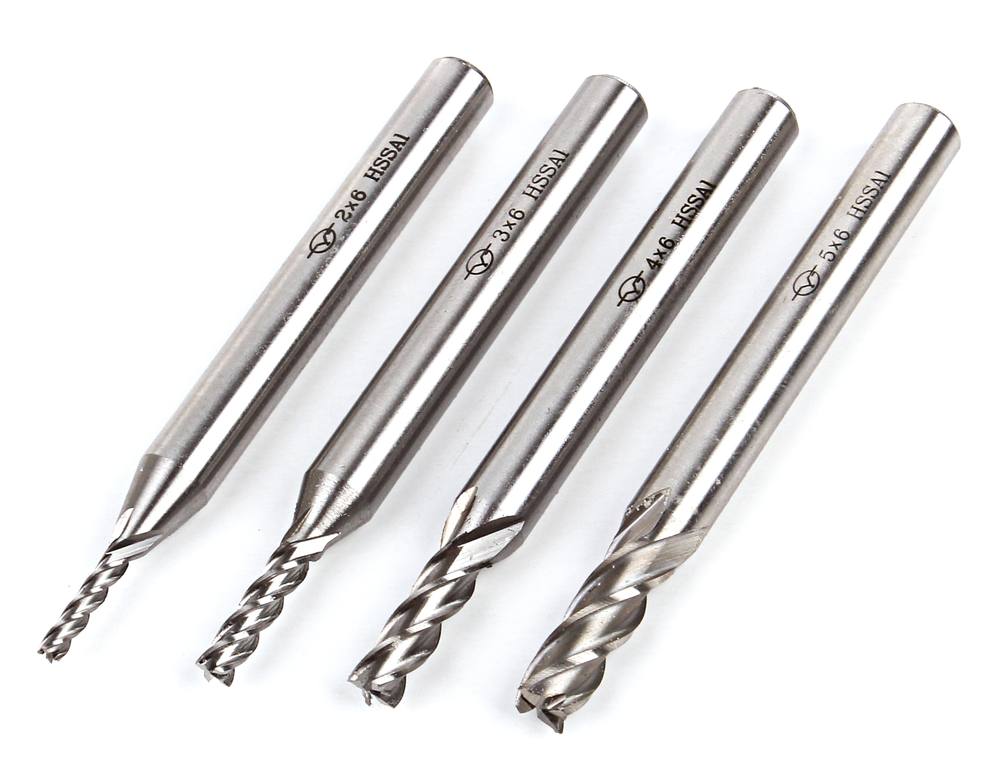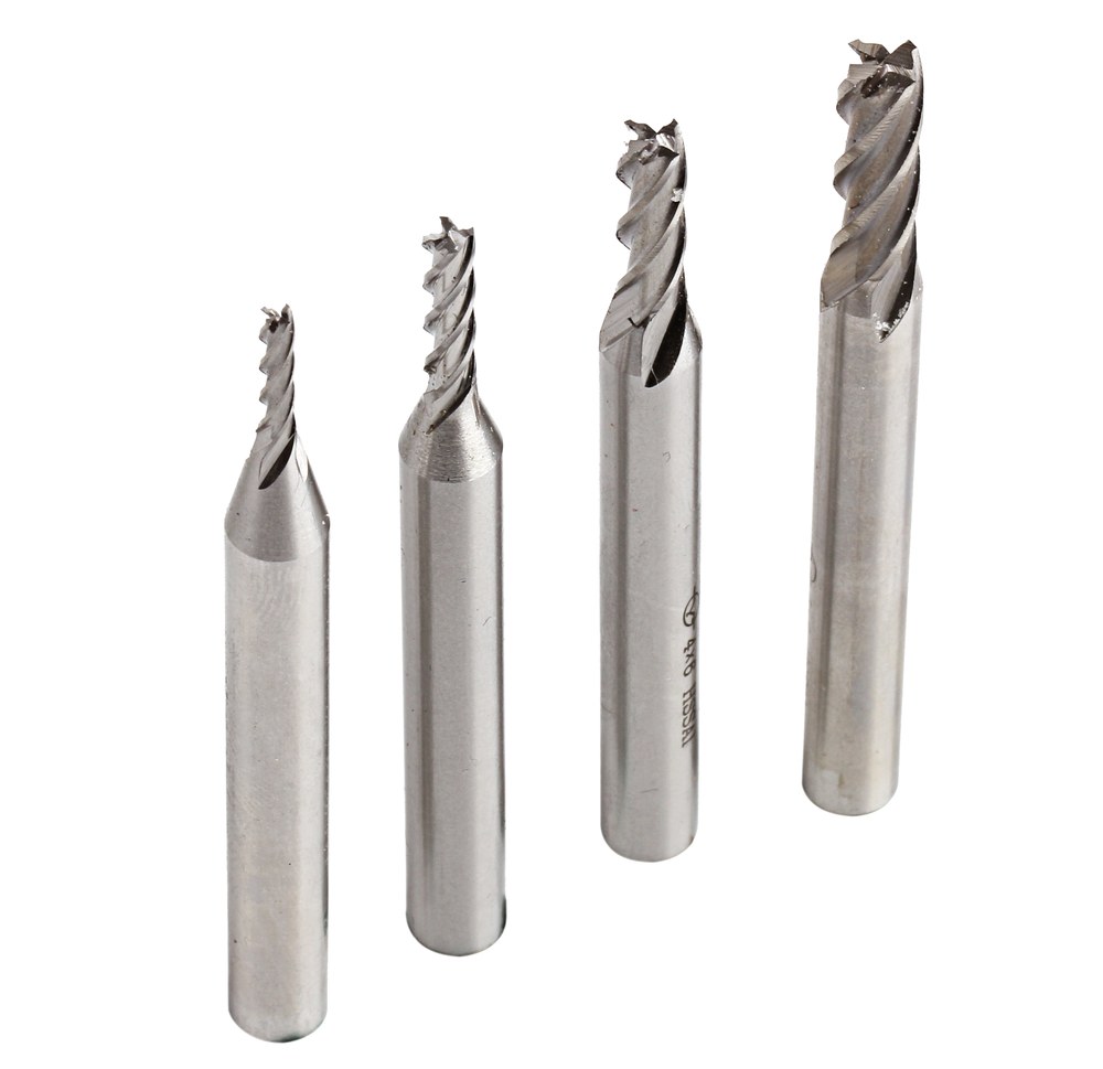 【4本セット】エンドミル 4枚刃 ハイス鋼 HSS 2mm ~ 5mm ( 合金鋼 鋳鉄 アルミ 銅合金 切削に)