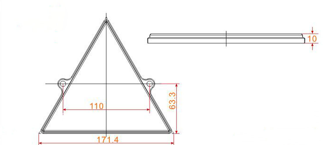 ・サイズ:一辺171.4mm ビスの穴110mmピッチ ビスと底辺の距離63.3mm 厚さ10mm
