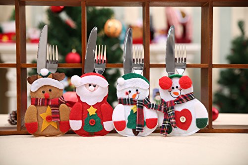 Homeditor Christmas Tableware Holder Knife and Fork bags Dinner Table Decor Silverware Pockets Christmas party Table Decoration set of 4 PCS