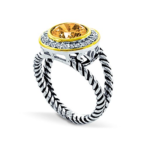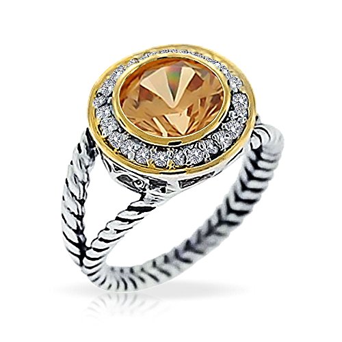 -. Title : Bling Jewelry Sterling Silver Round Champagne CZ Double Cable Ring