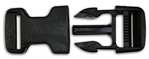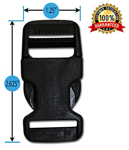 - REPLACE YOUR OLD BUCKLES: Suitable for any project using 1 inch webbing or straps, these durable, plastic buckles are designed to offer fast and effortless, single handed adjustment, while their exceptional strength and smooth release action make it a great choice for any side-release application. Dimensions: 2.625 L x 1.25 W. Available in black color.