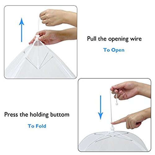 Features: Perfect for camping, picnic, party, BBQ table, home; Cover all foods such as burgers, bbq chicken, steaks, grilled veggies, corn on the cobb, kabobs, watermelon, cantaloupe, pineapple, fruit salads. It is very easy to use, pop-up tent structure likes an telescopic umbrella, easy to open and close. Extended function: not only can be used to protect food, can also be used for protection of garden, plant, and vegetables. Parameters: Material: mesh stainless steel. Size: opening: about 17 x 15.5 x 12.5in. Packing List: 4 x protective cover 1 x carton 0 |