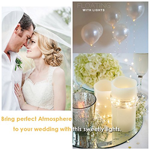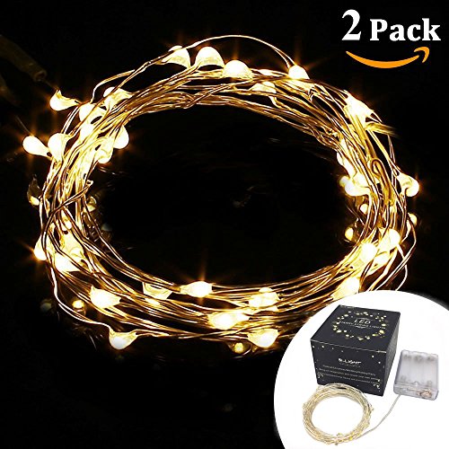 -. Feature : 1. PRODUCT DETAILS: Super Bright Warm White Individual LED on Ultra Thin Copper Wire, 4 Inches Apart. Newest Clear and Small Battery Box (3 x AA Batteries Required, but not Included) that is Easy to Hide away. The strings are WATERPROOF, however the battery box is not / 2. EXCELLENT PERFORMANCE: The copper wire is FLEXIBLE and easy to mold into any shape you desire. Warm white-yellow mini Led lights with steady 360 degree viewing angle are bright enough and they illuminate a dark corner and create a romantic sentiment, Perfect for spice up your decoration and add welcome feelings to your party, restaurant and shops. Perfect for using as a lighting addition to any decorative project. Enjoy a fantasy lighting experience / 3. PREMIUM QUALITY: Made by Precision Work, String Lights has over 50000 Hours of Life Span / 4. COST EFFECTIVE and ENERGY EFFICIENT: Low power & heat insulated copper wire make it not overheat after many hours of usage. You can safely touch it even after 14 hours of usage. The batteries can last for 64+ hrs non-stop operating time, more with breaks / 5. HIGH RELIABILITY: Guaranteed with CE and RoHS Certification. We GUARANTEE of the quality and safety. Our Customer Satisfaction Money-Back Guarantee: If you are not satisfied with the Rope Lights, just return them within 30 days for a full refund