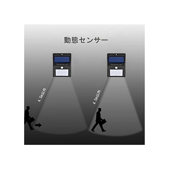 보다 밝다:16LED전구를 부착,통상의 8LED 보다 밝다,전점등 때는 충분한 밝기입니다.야간에 아주 멋진 조명 효과를 제공해 주고, 방범 효과도 있습니다.조아키노리위도 넓습니다.