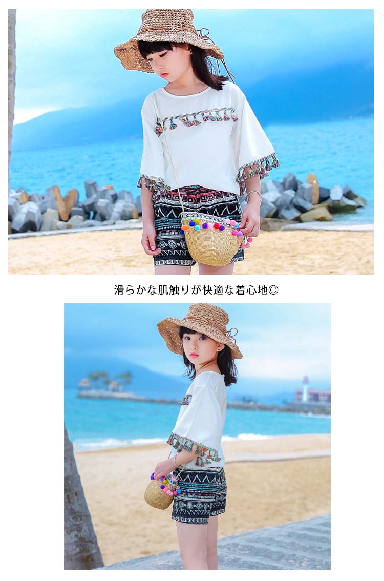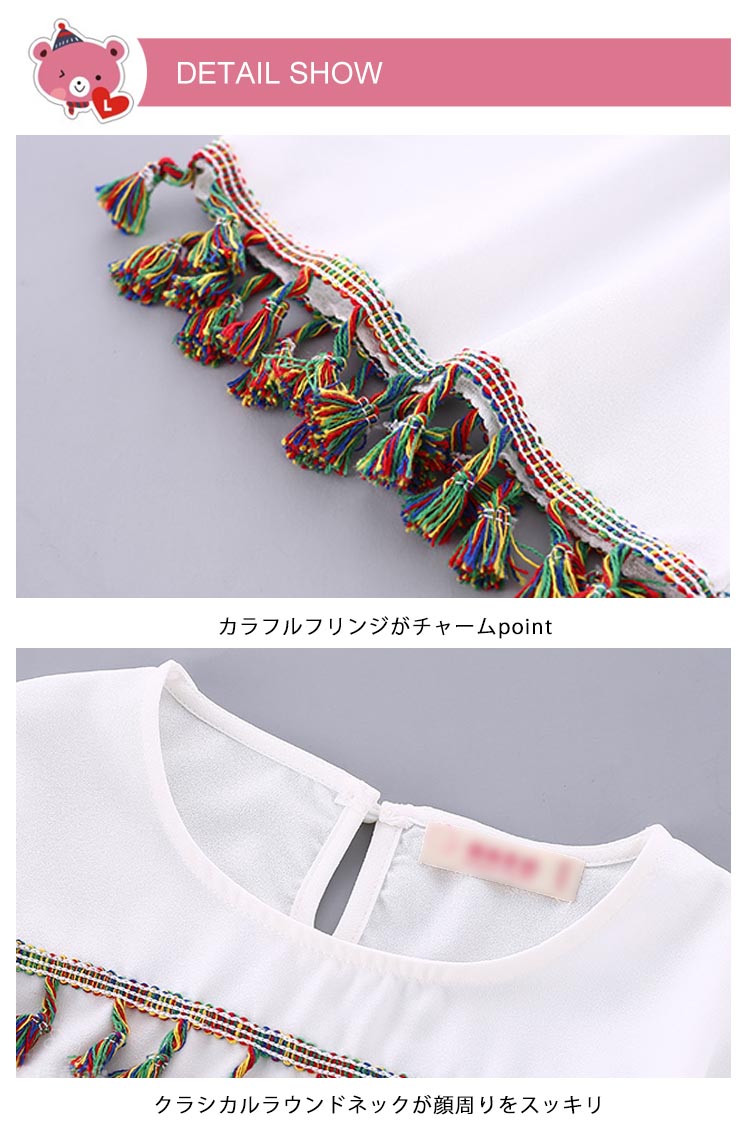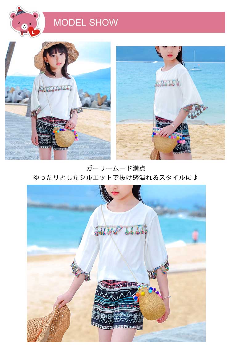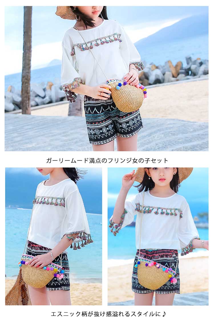 | ガーリームード満点ゆったりとしたシルエットで抜け感溢れるスタイルに♪ガーリームード満点のフリンジ女の子セットエスニック柄が抜け感溢れるスタイルに♪滑らかな肌触りが快適な着心地◎ | |