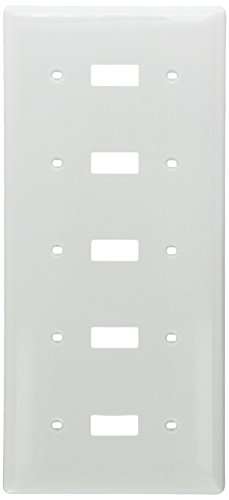 Hubbell standard size 5-toggle switch wall plate with 5 gang. For use in industrial, institutional, commercial, and residential applications. We have totally redesigned and expanded our line of nylon wall plates featuring larger standard sized wall plates to give extra coverage to hide rough box opening, improved aesthetics, greater strength, impact resistance, along with excellent clean ability in all different types of environments. Curved corners for improved aesthetics, for use in any application. Reinforcement ribs for extra strength. Captive screw feature holds mounting screw in place for quick and easy installation. High-impact, self-extinguishing nylon material, which is virtually unbreakable. Smooth, easy to clean finish is highly resistant to solvents and cleaning solutions, providing long life in the harshest environments. Standard size is 1/16 inches larger to give you extra coverage to hide rough box openings. Non-conductive material. The depth is 1/16 inches so that it will comfortably fit over the device even on imperfect installations or on retrofit work. Measures 10-1/16 inches width by 4-5/8 inches height by 1/16 inches thickness.Feature