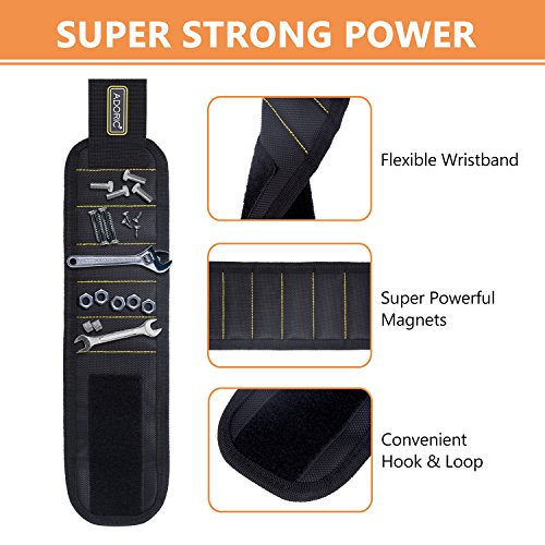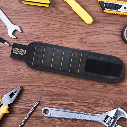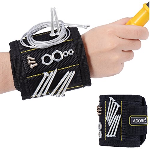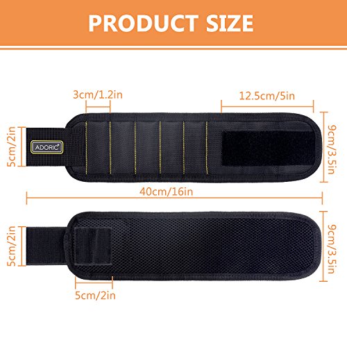 Adoric Magnetic Wristband, Breathable Magnetic Wristband with 10 Magnets for Holding Screws, Nails, Drill Bits, Idea for DIY Work for Men,Women,Handyman Gift (Black)