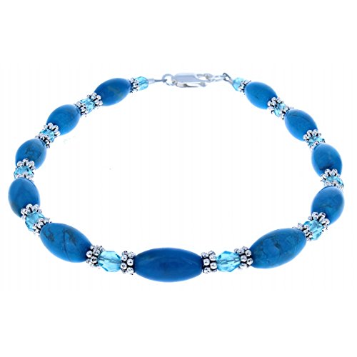 -. Title : Womens Turquoise, Czech Fire Polished Glass & Sterling Silver Ladies Beaded Gemstone Anklet with Daisies