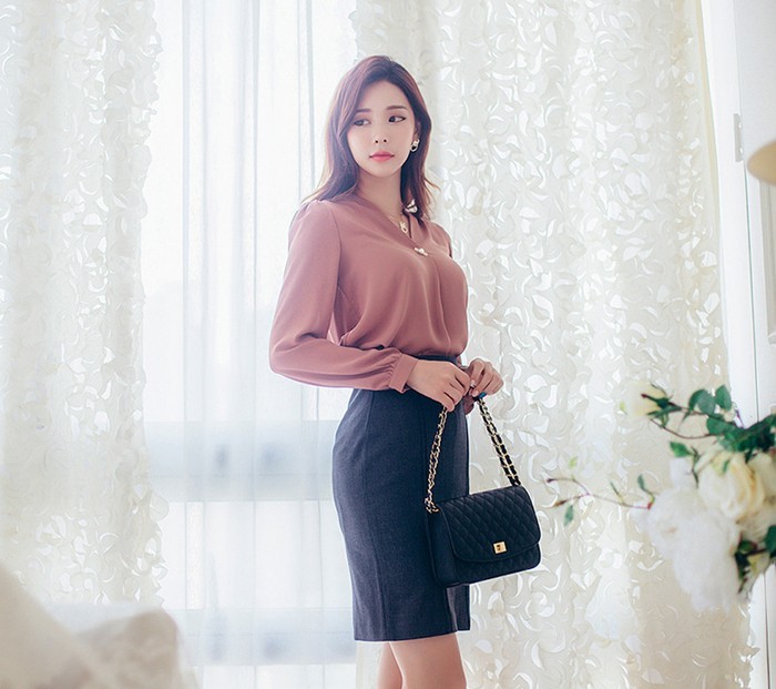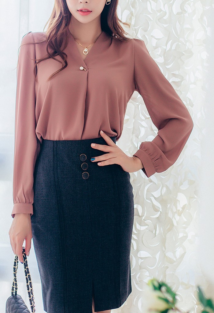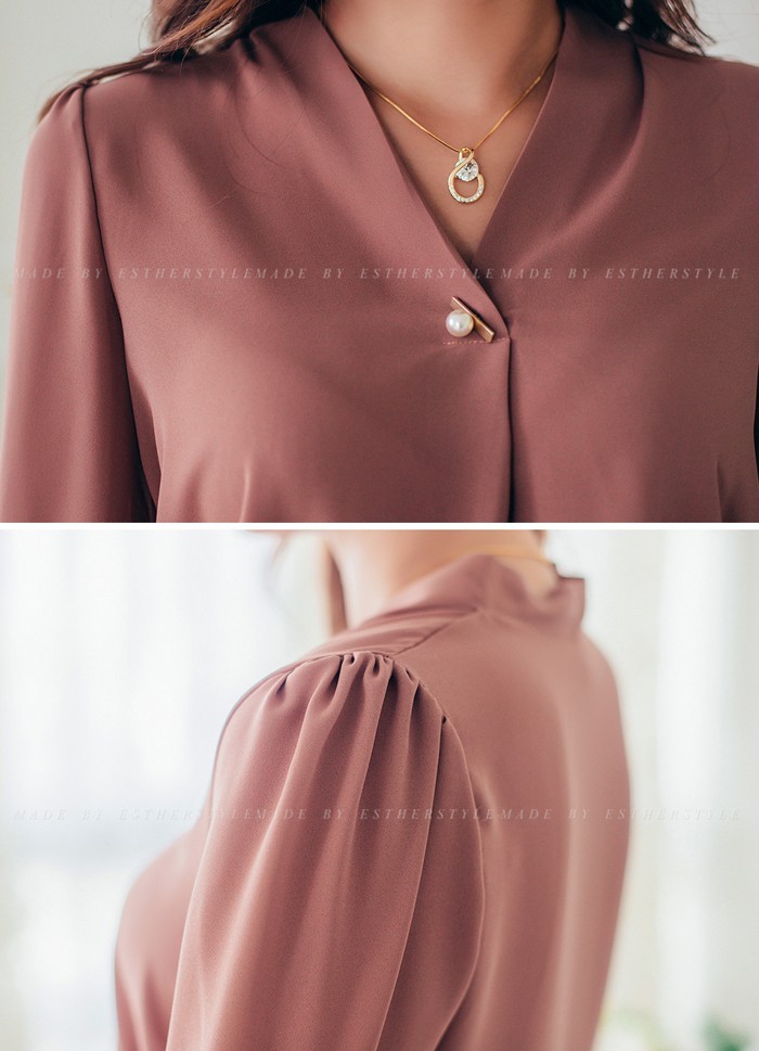 商品名:ブラウス プルオーバー 無地 長袖 きれいめ