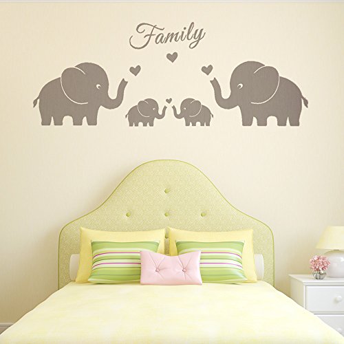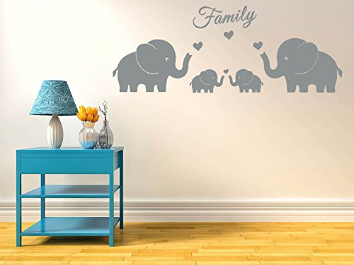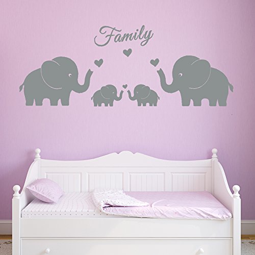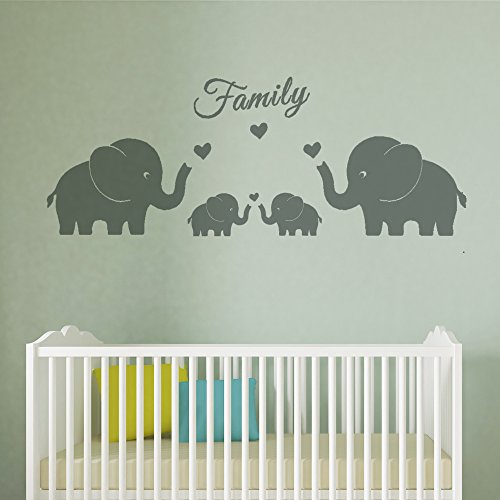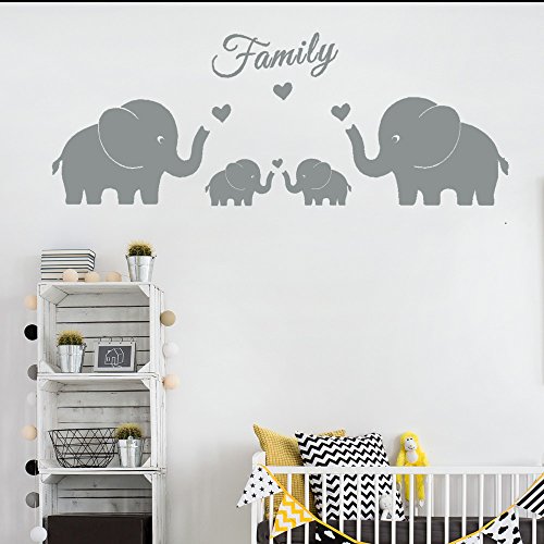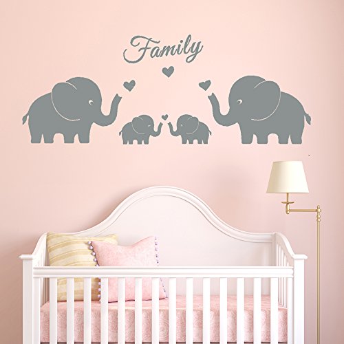 4 Cute Elephants Family Wall Decals Parents and Twins Elephant Wall Decal for Baby Nursery Love Heart Family Words Vinyl Wall Art Elephant Home Decor(Large size) (Grey)