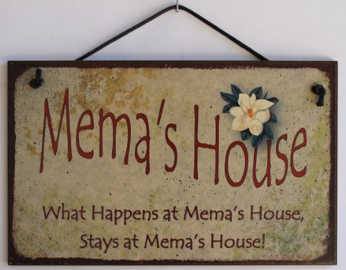 5x8 Vintage Style Sign with Magnolia Saying, "Mema's House What Happens at Mema's House, Stays at Mema's House!"