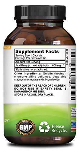 MONEY BACK GUARANTEE Acai berry fat burner is rich in vitamins A, B1, B2, B3, C and E coupled with calcium, magnesium, potassium, zinc, and copper as well as anti aging high antioxidant formula complex detox for men and women.