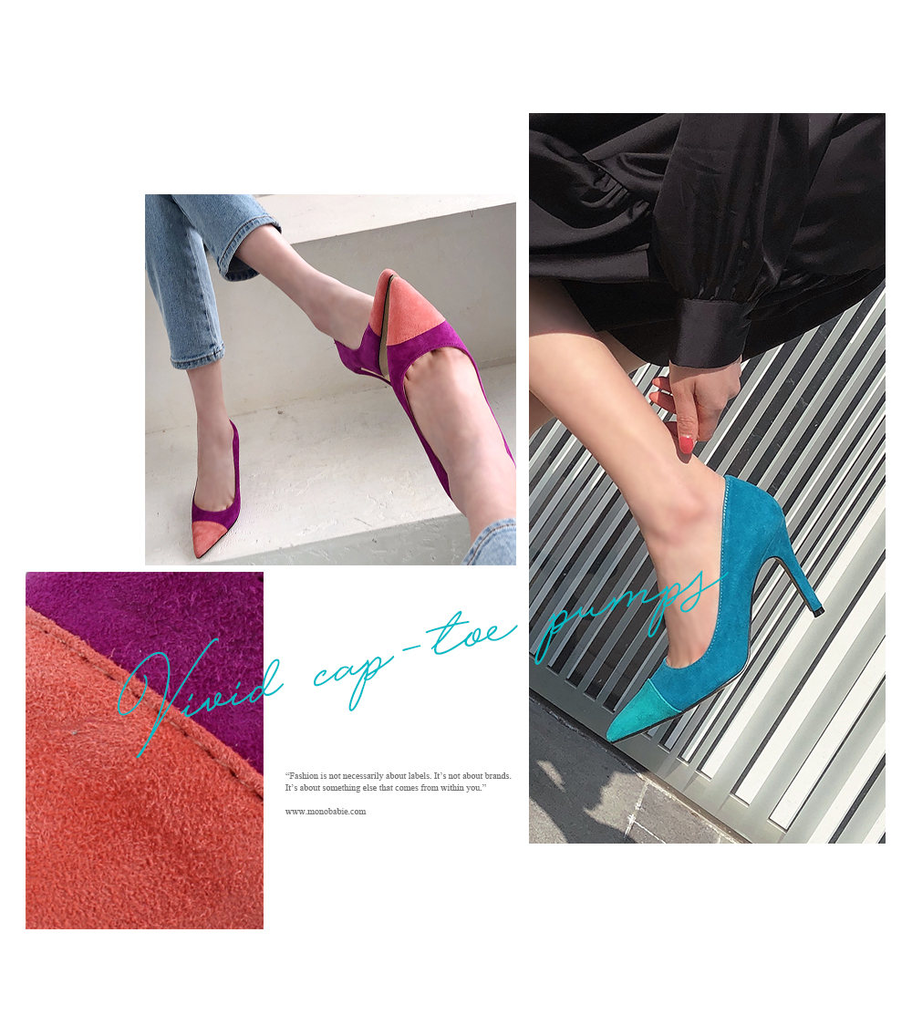 Vivid coloration stiletto suede pumps heel.