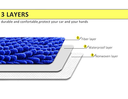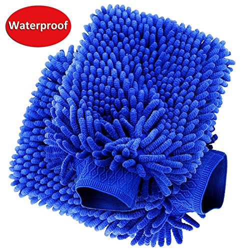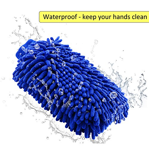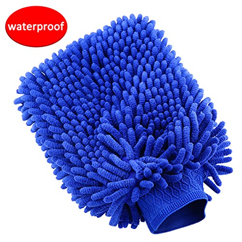 Wash Mitt LIBERRWAY 100% Waterproof Wash Glove Microfiber Chenille Anti-scratch Car Wash Mitt Wash Sponge for Car SUV Truck 2 Pack, Blue