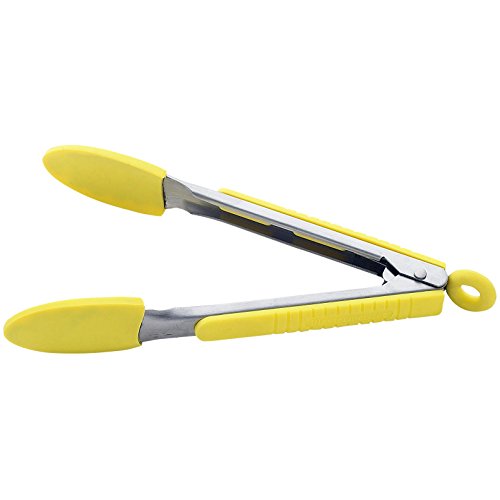 Messermeister 7" Mini Mighty Silicone-Coated Locking Tongs, Yellow