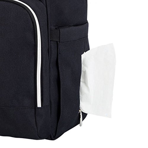 ULTRA FUNCTIONAL: A smart 17 pockets backpack diaper bag, equipped with integrated stroller straps, a back zippered pocket to store you phone, a side tissue holder, elasticized interior pouches and a free changing pad