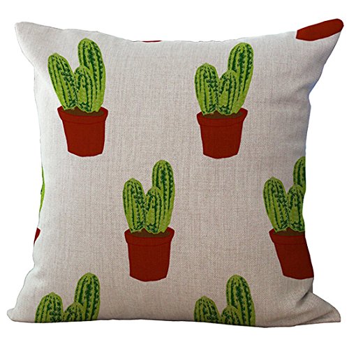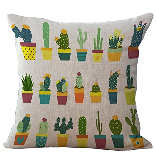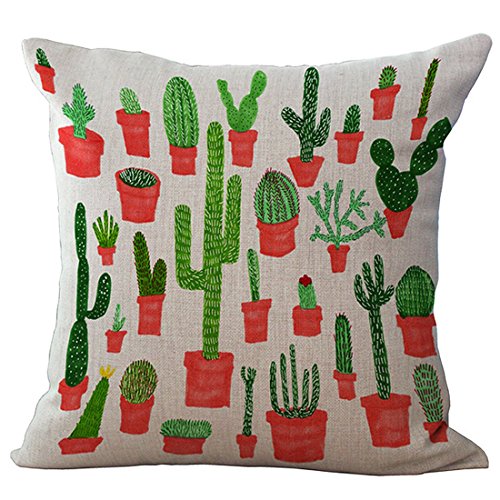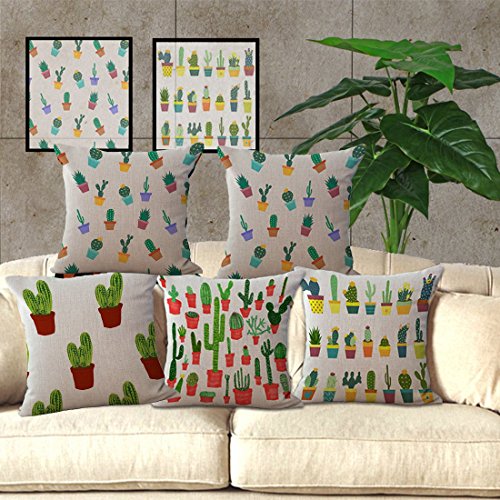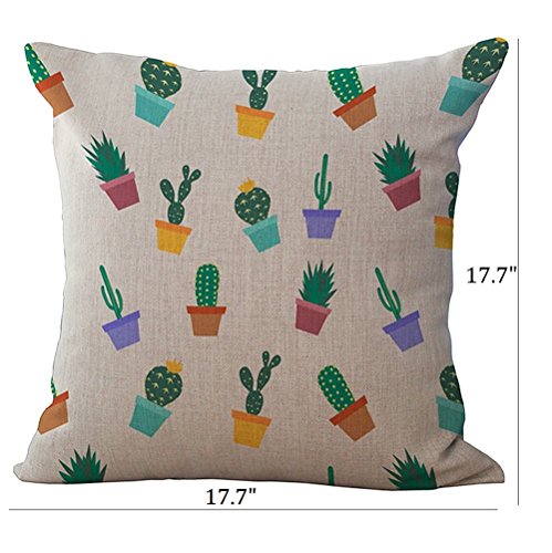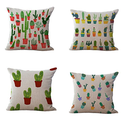 Set of 4 Throw Pillow Covers, YIFAN Tropical Cactus Plants Pattern Polyester Ramie Square Pillow Cover Decorative Cushion Case Pillowcase Home Decor 17.7*17.7 Inch