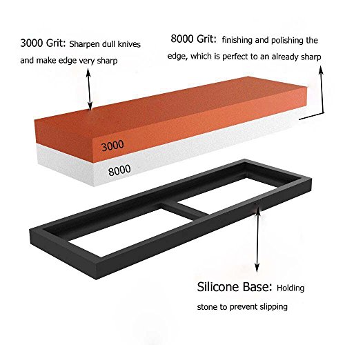 - 2 GRIT SIDES ENSURE BEST SHARPENING: Coarse side 3000 grit can make edge very sharp, and edge reflects light well; Fine side 8000 grit is ideal for finishing and polishing the edge, and perfect for light touch-ups to an already sharp. Perfect tool for sharpening blades.