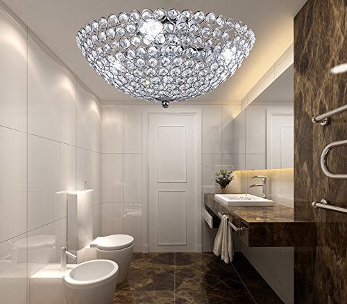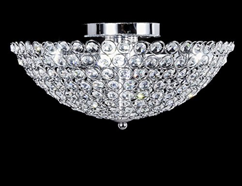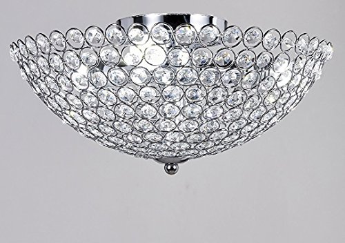 New Galaxy 3-light Bowl-shaped Chrome Finish Metal and Crystal Shade Crystal Chandelier Flush Mount Ceiling Light