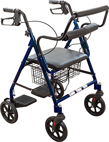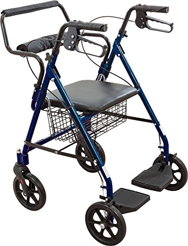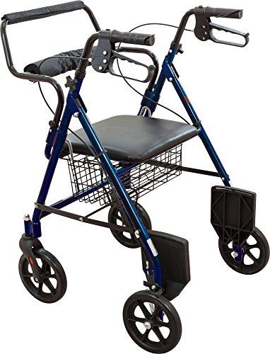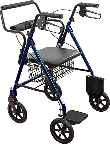 Roscoe Medical 30194 Transport Rollator with Padded Seat, Blue