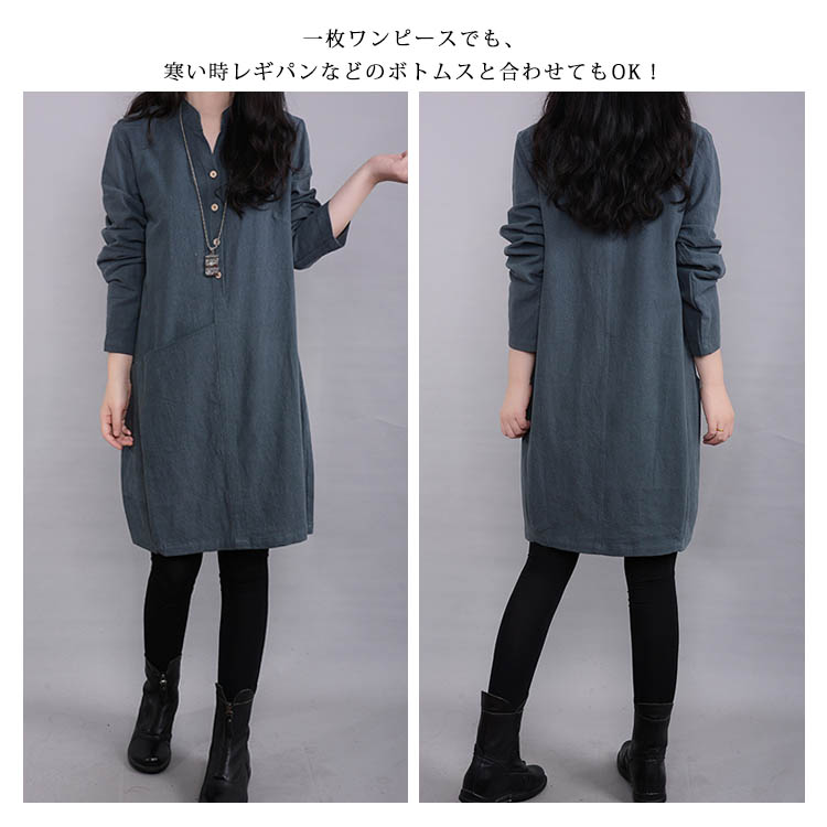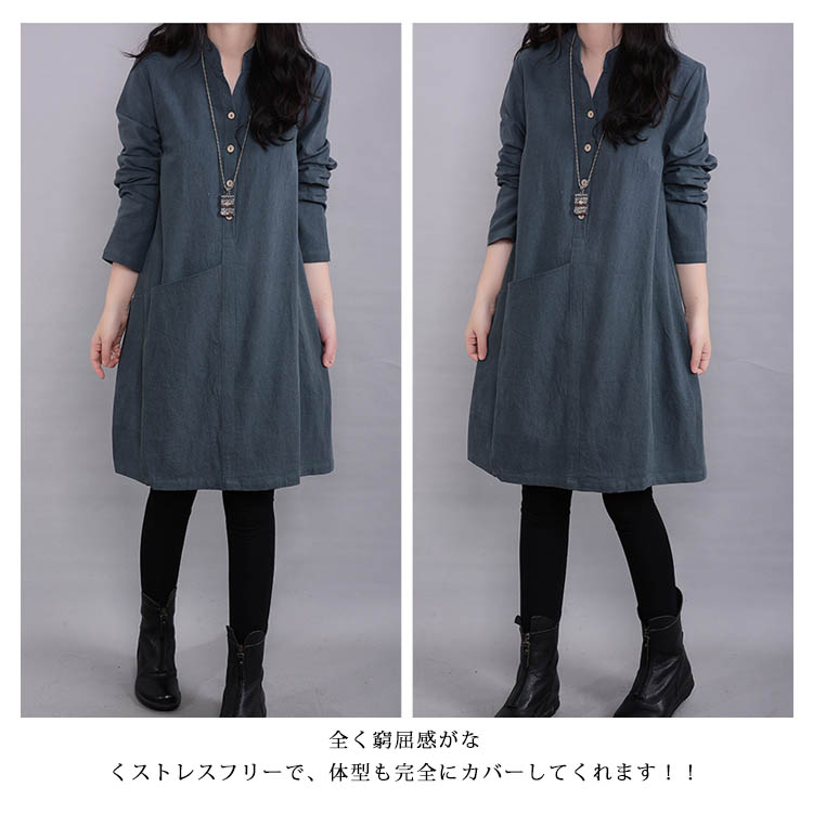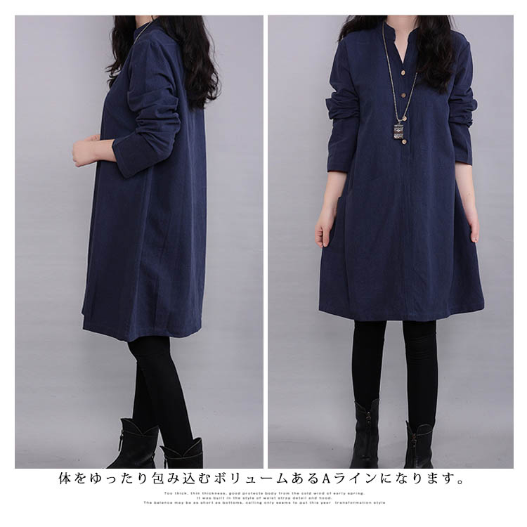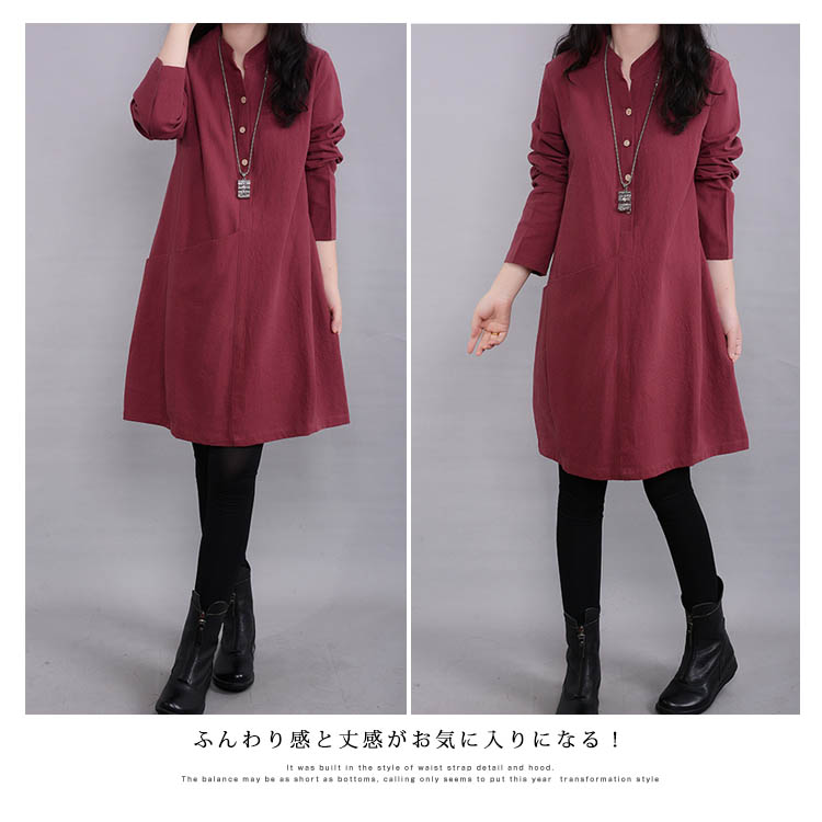 | 素肌に気持ちのいい綿麻で仕上げたカジュアルワンピース。ふんわり感と丈感がお気に入りになる!体をゆったり包み込むボリュームあるAラインになります。全く窮屈感がなくストレスフリーで、体型も完全にカバーしてくれます!!一枚ワンピースでも、寒い時レギパンなどのボトムスと合わせてもOK! | |
