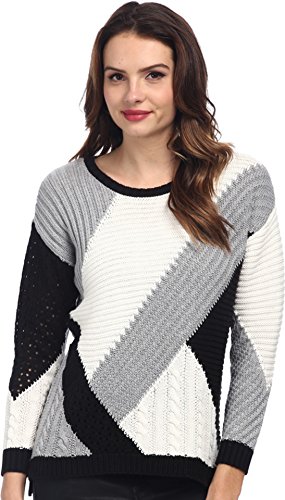 Flaunts a unique stitching patterns all over on a superbly soft cotton blend fabrication. Ribbed details at neckline, cuffs, and hemline. Rounded neckline. Long sleeve design. Split high-low hemline. 70% cotton, 30% acrylic. Machine wash cold, flat dry. Imported.