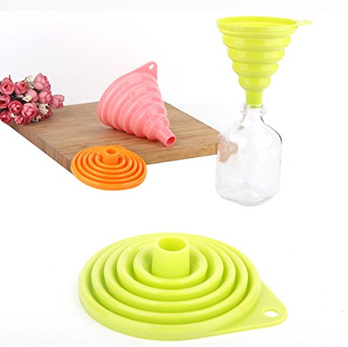 【Collapsible Design】One folding funnel has a diameter of 3.5 inches and a height of 3.2 inches, which is large enough for any place in the kitchen. Great for transferring liquids or other dry ingredients, with holder tab design which can sit on bottles or jars.