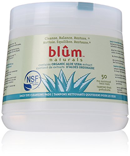 BLUM NATURALS DAILY EYE CLEANSING PADS, ALOE VERA, 50 COUNT