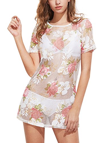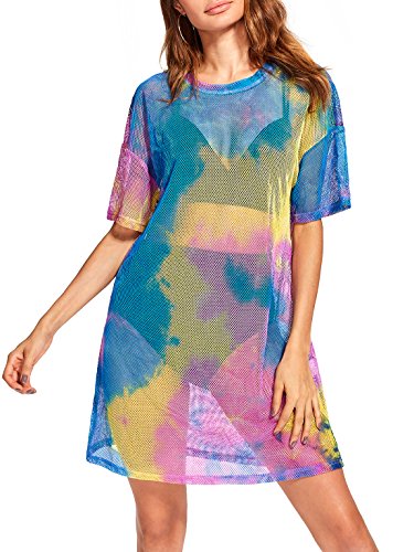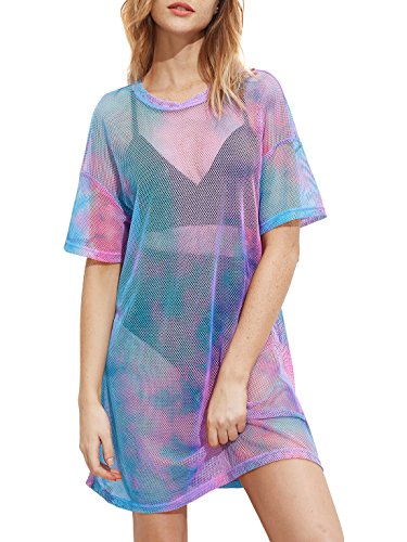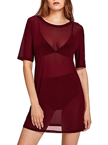 Solid color mesh insert sheer dress. Fit for everday dressing, party, club and beach wear. For women. For summer.