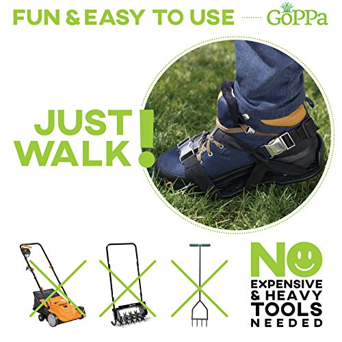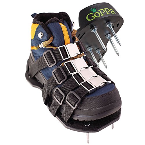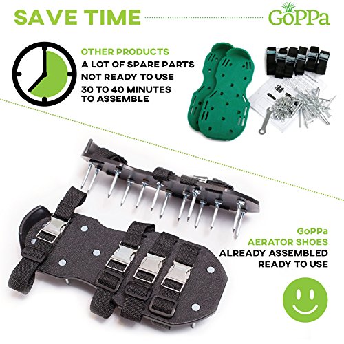 GoPPa Lawn aerator shoes – fully ASSEMBLED product, you only FIT ONCE on your gardening shoes. Ready for aerating your yard, lawn, roots & grass