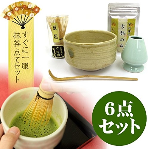 -. Feature : 気軽に抹茶を始めたい!そんな方のためにお買い得価格で楽しんで頂けるセットが登場♪ / 抹茶点てに必要な道具とおいしい抹茶。大事な茶筅の保管に便利な“くせ直し”も入っています! / 初めての方でもわかりやすい写真付きの抹茶点て説明書も入った6点セット。 / 男女年齢問わず使えるので、ギフトとしても好評です。 / 無料ラッピングも承っております!!