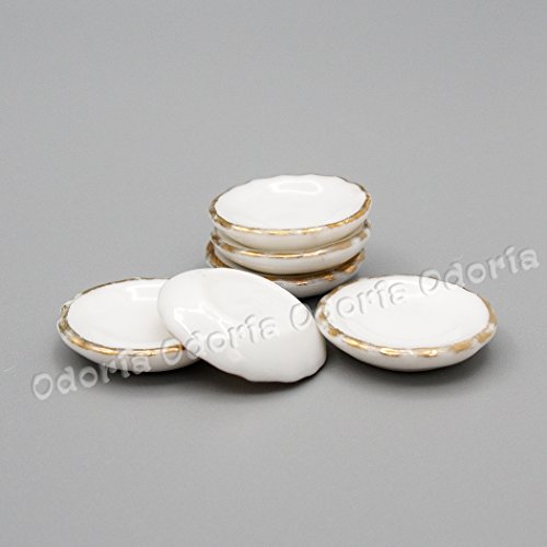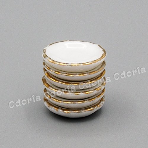 -. Title : Odoria 1:12 Miniature 6PCS Round Plate with Gold Rim Dollhouse Kitchen Accessories
