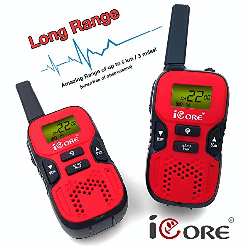 ♦ICORE connected for kids Walkie Talkies is ideal Gift for both kids and adults for supermarkets, shopping centers, festivals and any outdoor activities.Its portable size, generous sound quality and talk range 3km (MAX 6km open field) can give you the good performance to be any role such like policemen, firefighters, spies, and soldiers.