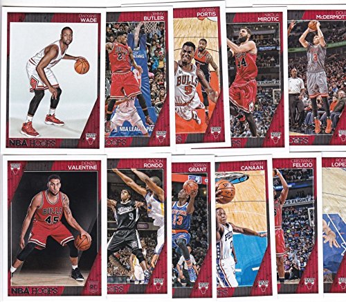 [Product Information]- This is a brand new 2016 / 2017 Chicago Bulls Hoops Basketball Factory Sealed NBA Licensed 11 Card Team Set with Jimmy Butler, Bobby Portis, Nikola Mirotic, Doug McDermott, Dwyane Wade, Rajon Rondo, Jerian Grant, Isaiah Canaan, Cristiano Felicio, Robin Lopez and rookie of Denzel Valentine.