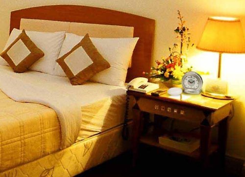 - Feature : Analog Alarm Clock with Super Shaker Bed Vibrating Unit / Extra-Loud Alarm 113 db with Adjustable Tone & Volume Control & Hi / Low Dimmer Switch / Sharp Blue Backlight Flashes When Alarm Rings Also Functions as a cCnvenient Night Light With An On/Off Switch / Dual Power Capability - 110 / 220 Volts (Requires Transformer Not Included) / New Green Power Technology Now Uses 60% Less Energy
